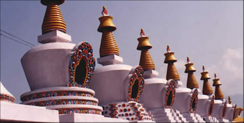 佛塔是證悟之心的建築表現,並且象徵成佛的不同特質。它的外觀象徵戴上冠冕的佛陀,以禪定之姿安坐在獅座之上。在藏文之中,佛塔被稱為「卻登」,或盛裝聖物的容器。佛塔的每一個部分都有其特殊的意義,而經典和聖物都依照特定的位置安放其中,皆具有象徵意義。